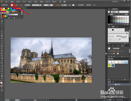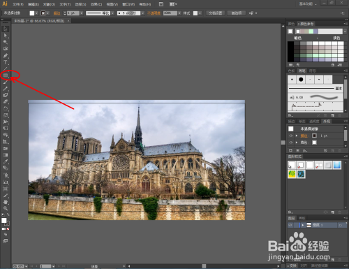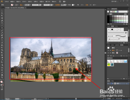 将找好的一张图片拉进软件中,鼠标点击选中图片,对图片进行大小调整。点击【矩形东西】,在作图区域绘制一个矩形图案,并将上方的颜色设置为:无;线宽设置为:黑色(如图所示);