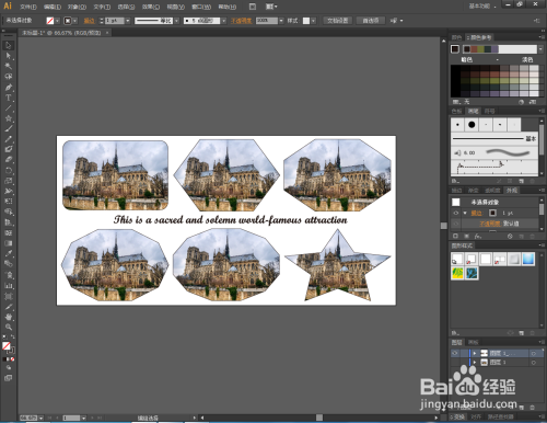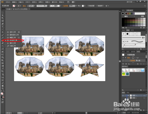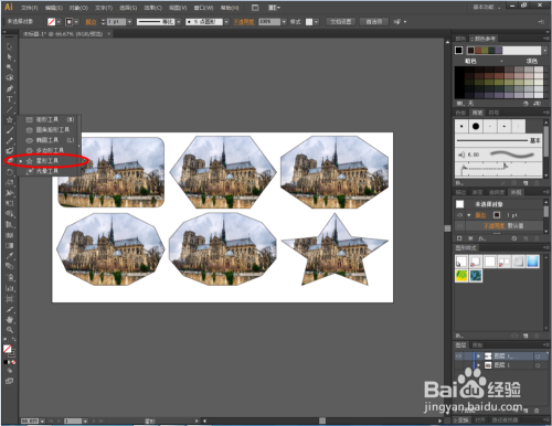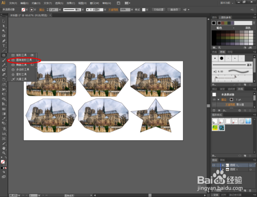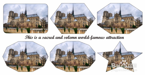 绘制分歧外形,点击【成立剪切蒙版】对图片进行剪切。完当作剪切操作后,我们可以做出分歧外形的“美景”。