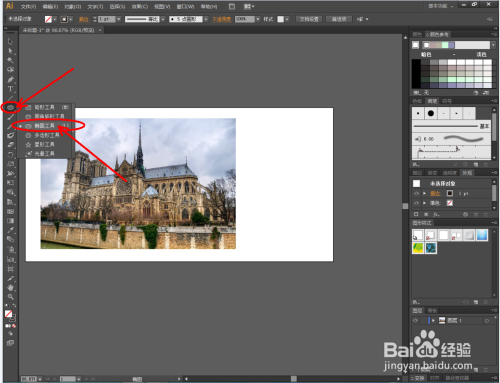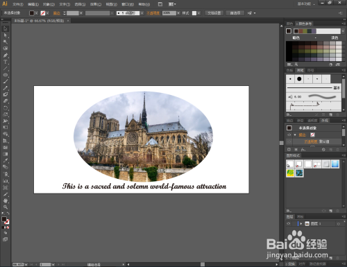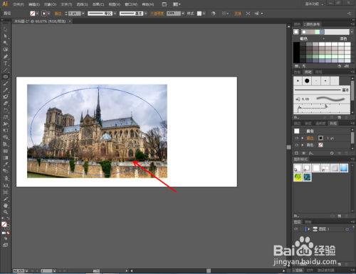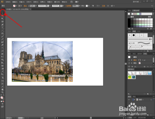 其他外形的裁剪也是一样的。将图片按图示进行大小调整,点击【椭圆】,在图片上方绘制一个椭圆图案。点击【选择东西】,框选图片和椭圆,点击鼠标右键【成立剪切蒙版】完当作剪切操作;