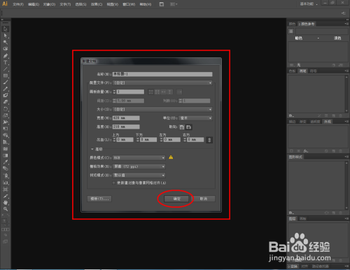打开Adobe Illustrator CS6软件,点击【文件】-【新建】,按图示设置完当作后,点击【确定】新建一个Ai文档;