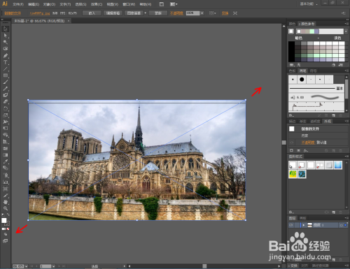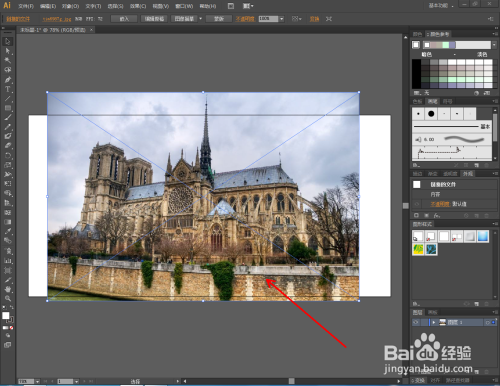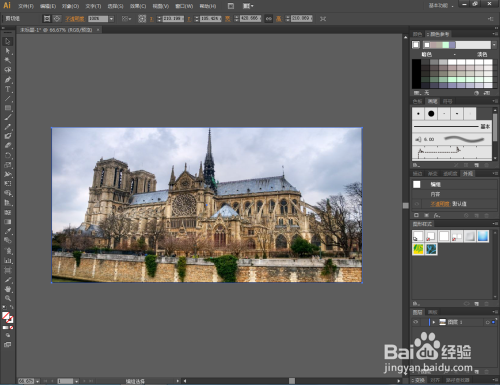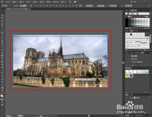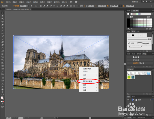 点击【选择东西】,选中图片和矩形,点击鼠标右键【成立剪切蒙版】。此时图片便裁剪为矩形图案的尺寸大小(如图所示);