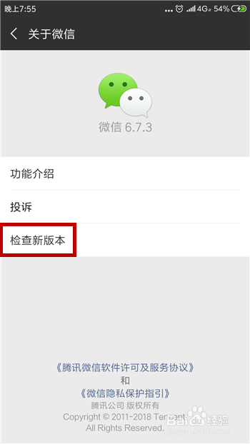 在关于微信中可以看到我们手机中微信的当前版本号,小编的是6.7版本的。