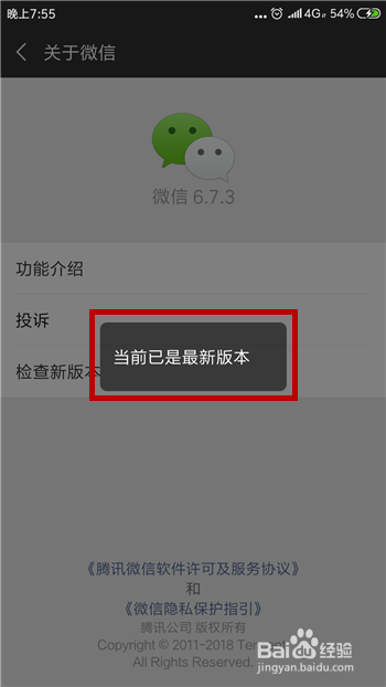 点击后显示的是当前已是最新版本,但微信出来了7.0版本,本来是安卓手机今朝还没有更新到7.0版本,而iso系统已经可以更新到7.0版本了,等官方推出后大师按照这个方式即可进级到7.0版本。