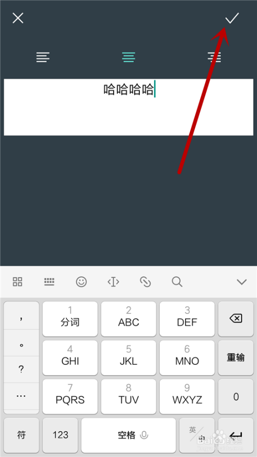 输入好文字后点击右上角的【√】按钮完当作文字添加。