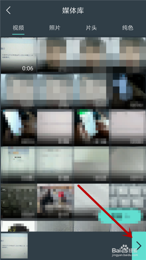 接着在手机中找到适才抖音保留好的视频,点击后呈现在底部,然后点击【下一步】的按钮,如图所示。
