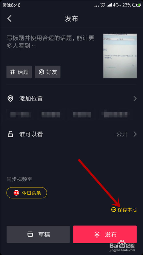 先在抖音中把视频给录制好然后在发布界面中选择【私密】发布,如许会把视频保留到手机中。