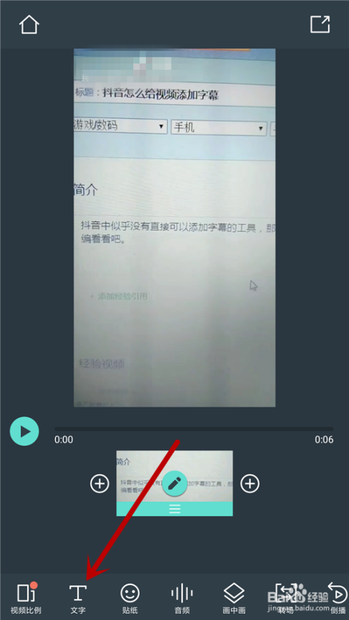 如许即可起头编纂视频了,鄙人方的编纂东西中点击【文字】。