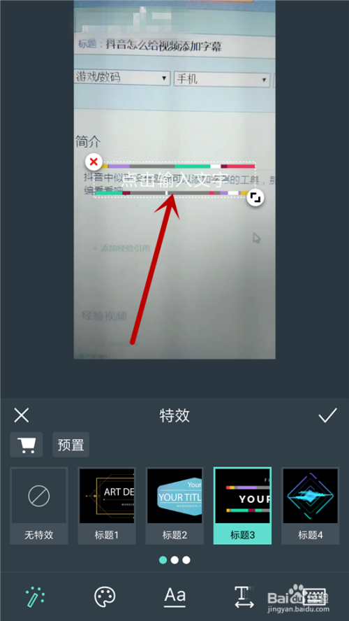 文字的添加有良多外形,点击喜好的外形后会呈现在视频区域,然后点击起头输入文字。