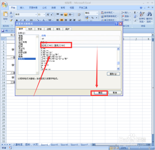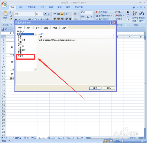 在数字选项卡,单击分类中的“自界说”