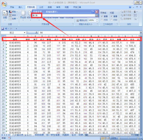 在本来工作表中选中第一行,也就是光标选中你需要每页都打印的表头部门