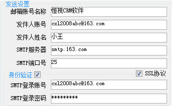 首先进行邮件发送设置,如下图所示。若是是新申请的163邮箱,SMTP登录密码请输入客户端授权密码,而不是邮箱登录密码。