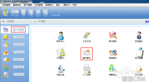 进入系统后,点击【客户办理】【邮件群发】,如下图所示。