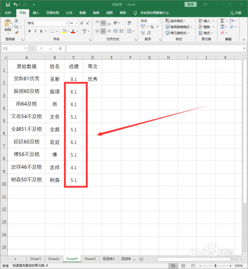 反复步调5,只是换当作选中单位格C3,该列残剩单位格也完当作主动填充。