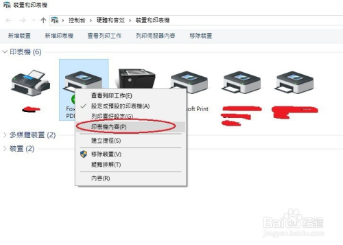 点击进入,你就能看到当前此电脑已经毗连的所有打印机和其他的多媒体装配以及已毗连的装配,在你想要测试的打印机上,右键选择打印机内容这一选项如图所示