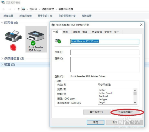 如下图所示,在打印机的内容里,在一般的Page下面,有一个列印测试页的选项,点击此按钮