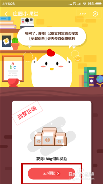 选好后点击确定就可以了,如许就可以回覆准确问题,点击【去领取】即可。