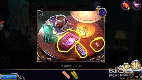 找全工具后,点击右下方的台灯,拿到灯后,点击灯,拆取上面的灯胆,然后回到餐厅。再点击适才拿开瓶器的位置,把灯胆装上。拿取门环,然后用胸针打开塑料包,拿取棉签和撮甲刀。