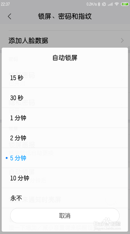 设置一个主动锁屏的时候,如下图。那么屏保就设置好了。