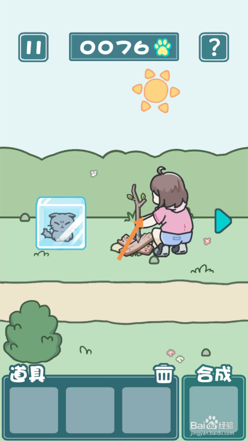 点击天上的白云,太阳出来后,一向点击尖树枝直到过关位置。