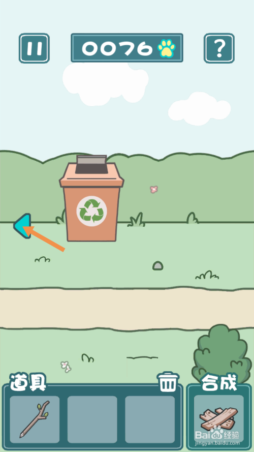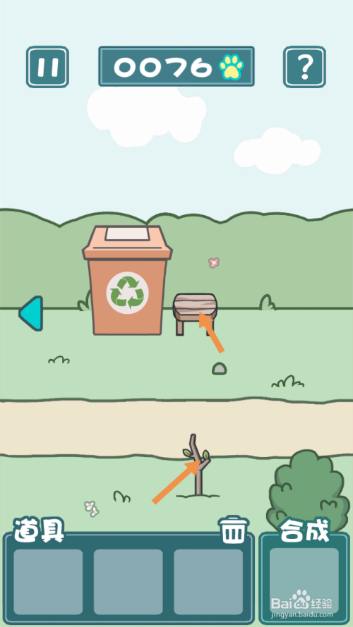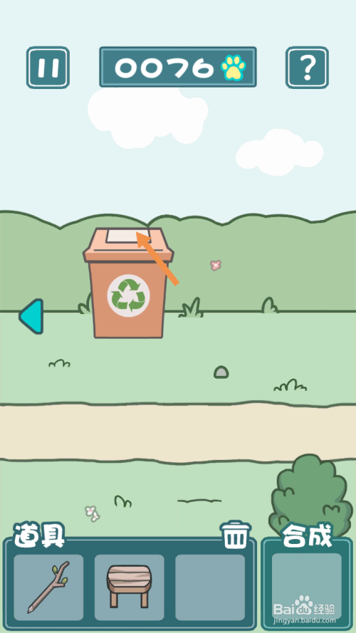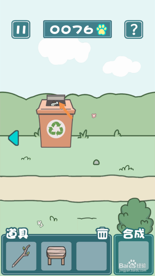 获得尖树枝和小板凳后,点击垃圾桶盖子,然后点击锤子。