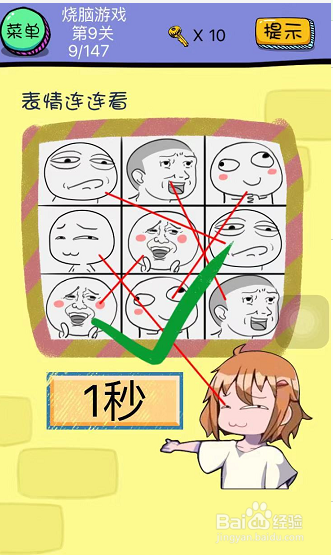 第九关,其实就是连连看,注重图中有是个脸色哦