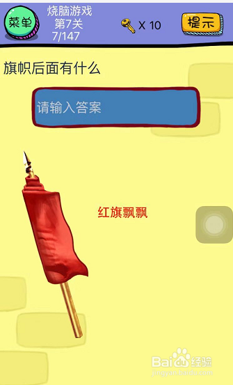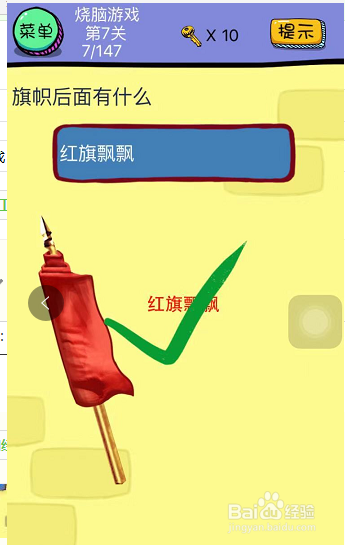 第七关:旗号后面是什么,不要觉得是后,要看到后面的工具,当然需要收起旗号啦,摇一摇手机,直到旗号收起来