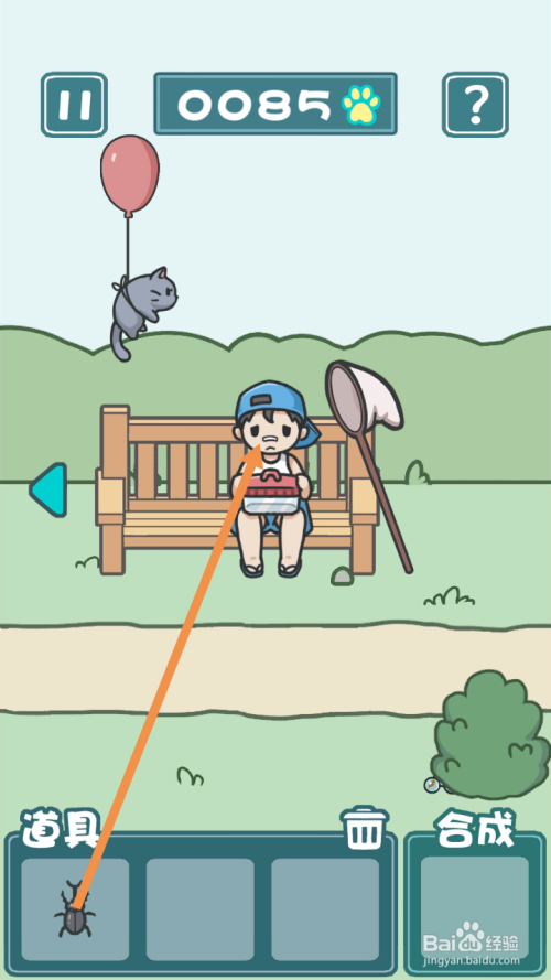 小男孩走后,点击捕虫网,然后点击标的目的左箭头到左边去。