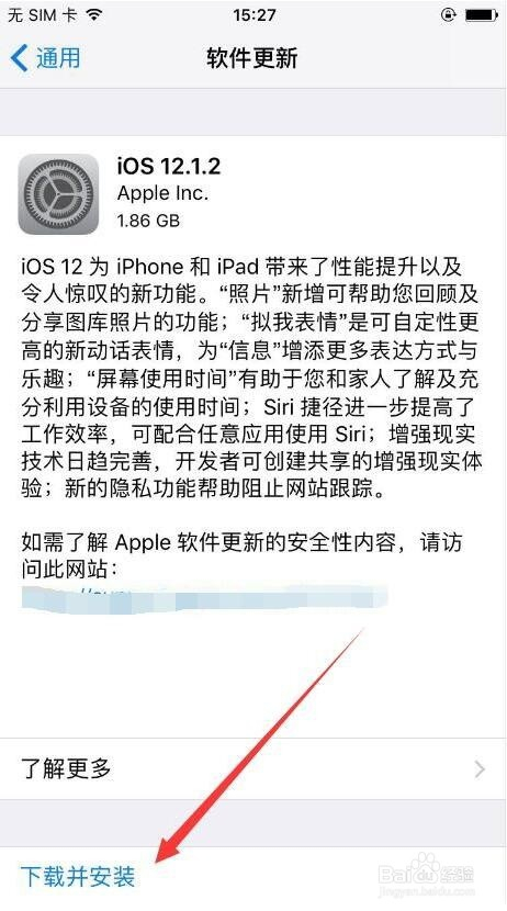 然后当前版本是低版本的,此时我们需要更新为查抄更新的ios12,点击下载并安装