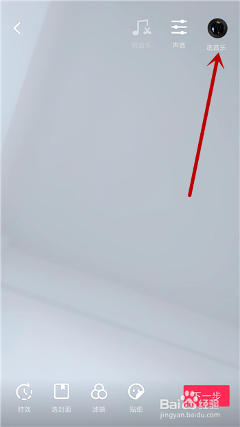 在编纂界面中点击右上角的【选音乐】打开配乐界面。