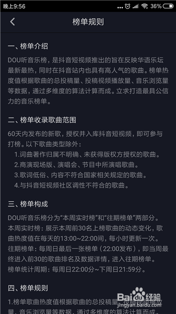 在榜单法则界面中大师即可领会到什么是DOU听音乐榜以及他的热度是按照什么来计较出来的。