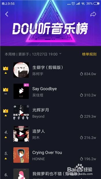 抖音里的DOU听音乐榜其实就是为了凸起抖音的特点,我们知道抖音之所以很火就是因为其有着各类好听的音乐,这个榜单的目标恰是为了反映当前一段时候最受喜爱的音乐榜单。