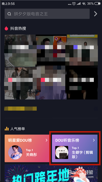 打开搜刮界面后在接近底部的位置就能看到【DOU听音乐榜】,点击一下。