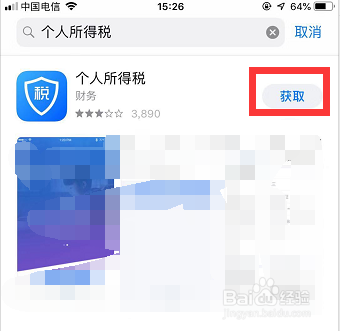 点击搜刮后,搜刮出的第一个APP就是个税APP,点击APP右侧的【获取】按钮,如图所示!