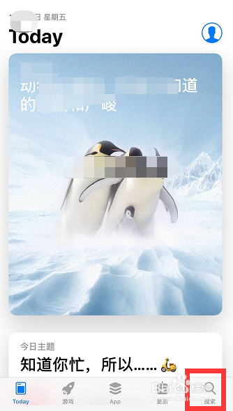 进入App Store内容页面后,找到并点击页面右下角的【搜刮】功能(如图所示),进入【搜刮】本家儿页!