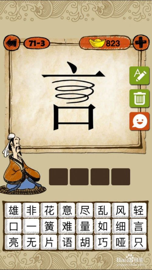 当作语玩命猜第71-4关,如下图,虫脱了壳之后酿成金色同党的蝉,谜底是金蝉脱壳。