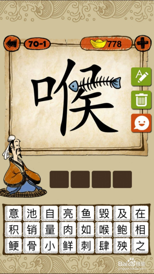 当作语玩命猜第70-1关,如下图,鱼骨在喉,谜底是如鲠在喉。