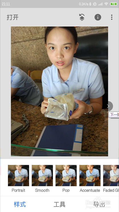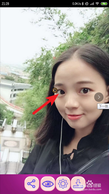 然后右眼一样用软件上的眼睛替代,替代了之后,点击下,那么即可把红眼去失落。今朝手机只可以或许做到如许子。