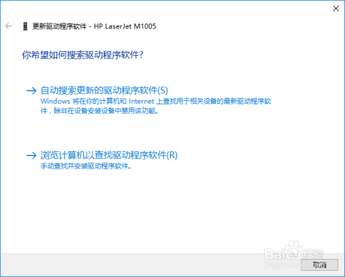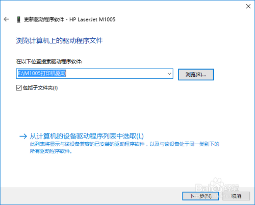 把官方下载的驱动LJM1005_Full_Solution用解压软件解压。右键单击HP LaseerJet M1005,选择更新驱动,浏览计较机以查找驱动。定位到驱动解压缩路径。
