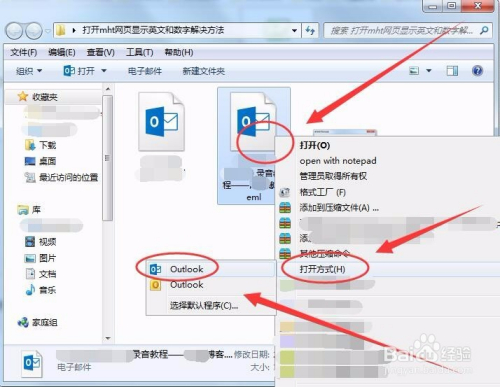 在文件上右击,选择打开体例中的Outlook选项。