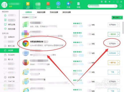 浏览器界面中,选择谷歌浏览器,单击一键安装。
