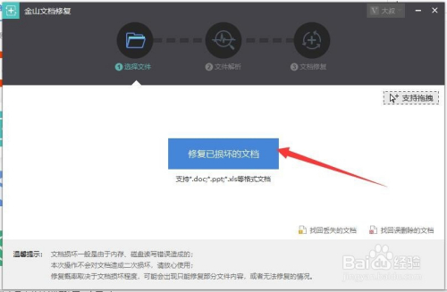 然后你此刻点击修复已经损坏的文件,这里选择一个你的文档