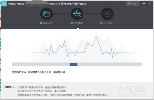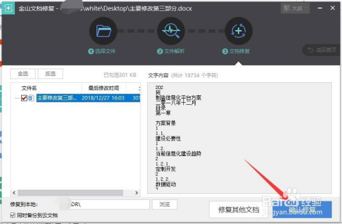 然后会呈现你的文档中的本家儿要内容,这里点击确认修复按钮,注重若是文档不值得,就不要修复了,因为这个需要缴纳修复金