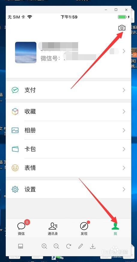 首先打开微信,然后在微信中点击我,然后在我的页面中找到右上角的拍照机的图标