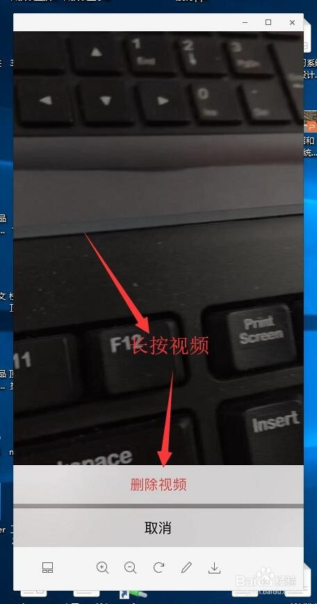 若是想要删除视频只需要长按视频2秒,系统会弹出一个删除视频的按钮选项