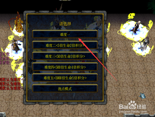 进入龙皇武神1.1.0游戏后,在弹出的游戏难度对话框里选择难度,如下图所示。