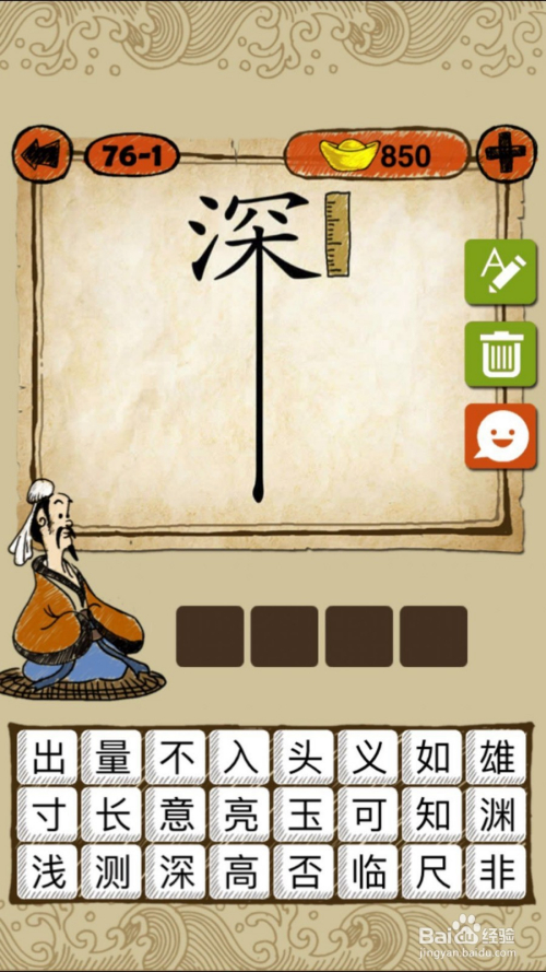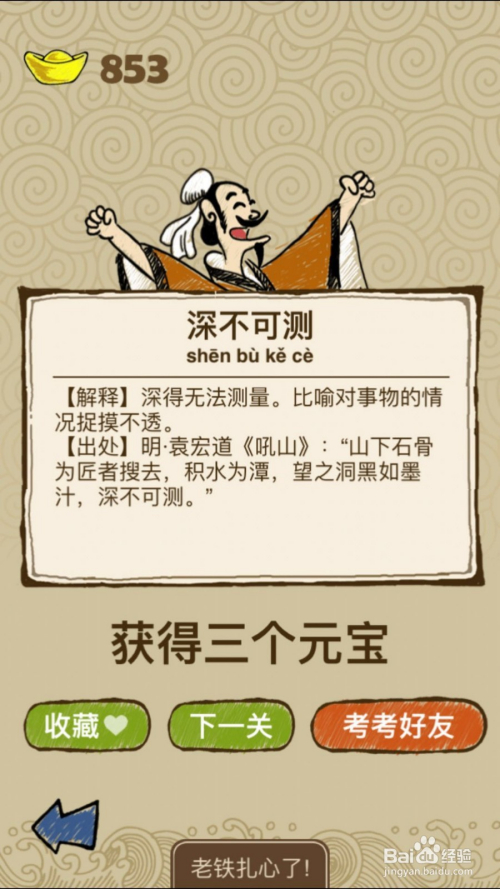 当作语玩命猜第76-1关,如下图,一把尺子,测不出“深”度,谜底深不成测。