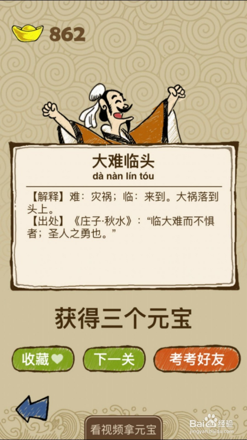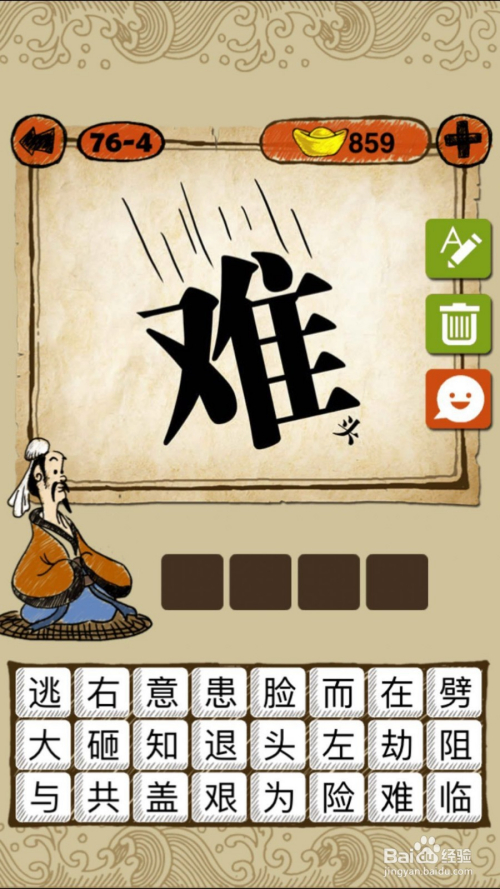 当作语玩命猜第76-4关,如下图,失落下来一个年夜“难”字,压在很小“头”字上,谜底浩劫临头。