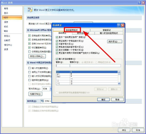 在“主动更正”页面,单击“键入时主动套用格局”单击