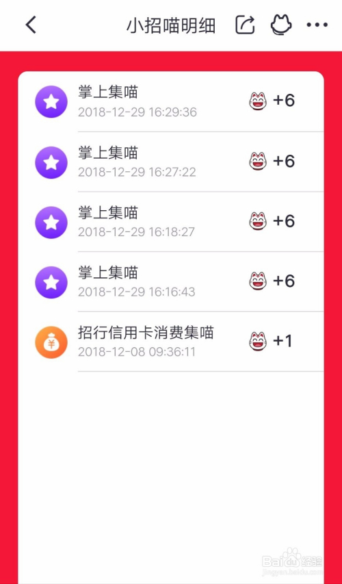 小招喵明细可以查看获取喵币的详情,如下图。