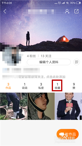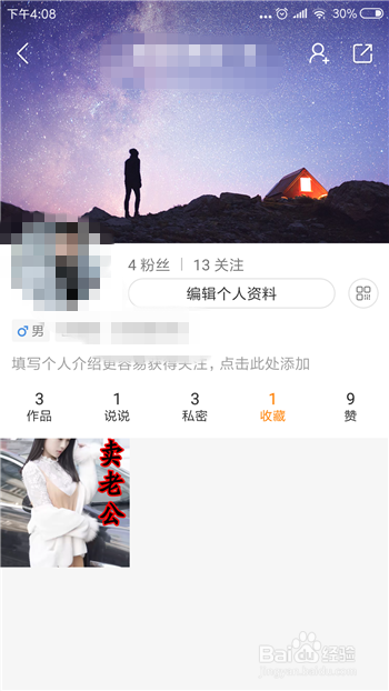 在小我本家儿页中找到【保藏】并点击。